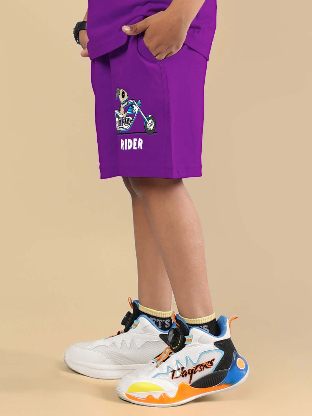 Add a bold twist to their casual outfits with the AUTHENTIC RIDER SHORTS FOR BOYS & GIRLS PURPLE.